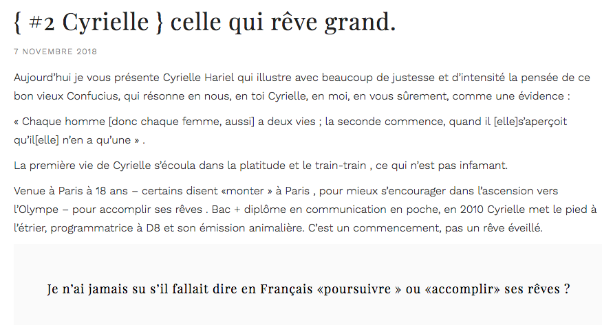 Déterminée, curieuse, passionnée et quelque peu impatiente