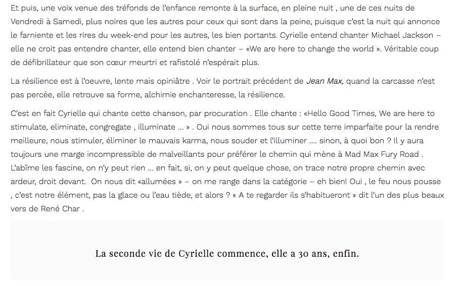 La résilience, croire en soi pour avancer et non se lamenter ! Je t’admire, tu es une parfaite Changemaker, aussi inspirante que business woman, what else ?